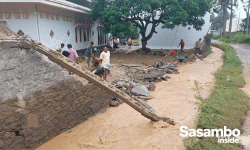 Sementara di Dusun Mengalung, luapan air menyebabkan robohnya dinding salah satu rumah warga dan merendam beberapa unit kendaraan milik H. Saidi alias Aq. Novi.