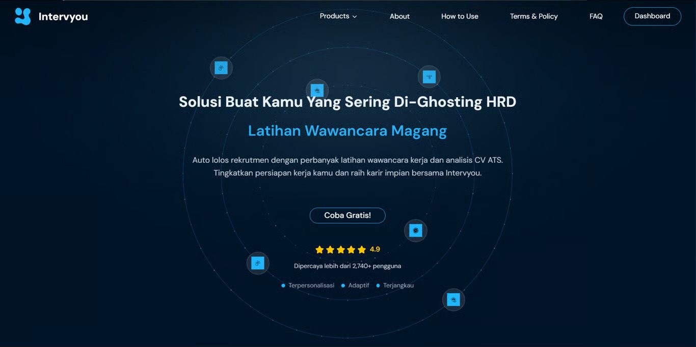 Intervyou sendiri menerapkan model berbasis token yang efisien, memungkinkan pengguna mengakses optimasi CV hingga simulasi wawancara secara on-demand tanpa beban biaya langganan bulanan.