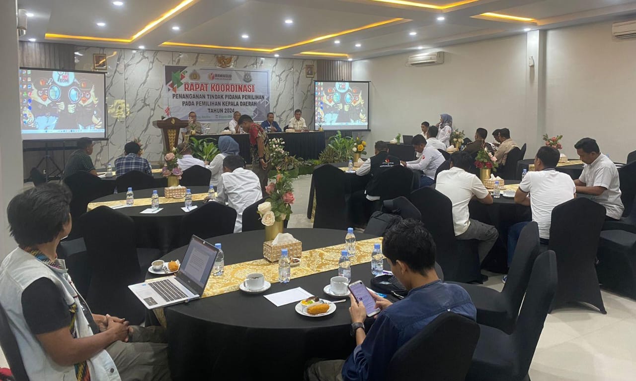 Bima, SasamboInside.-Personel Satreskrim Polres Bima yang tergabung dalam sentra penegakan hukum terpadu/ Gakkumdu mengikuti Rakor penanganan  pemilihan pada pemilihan kepala daerah tahun 2024.