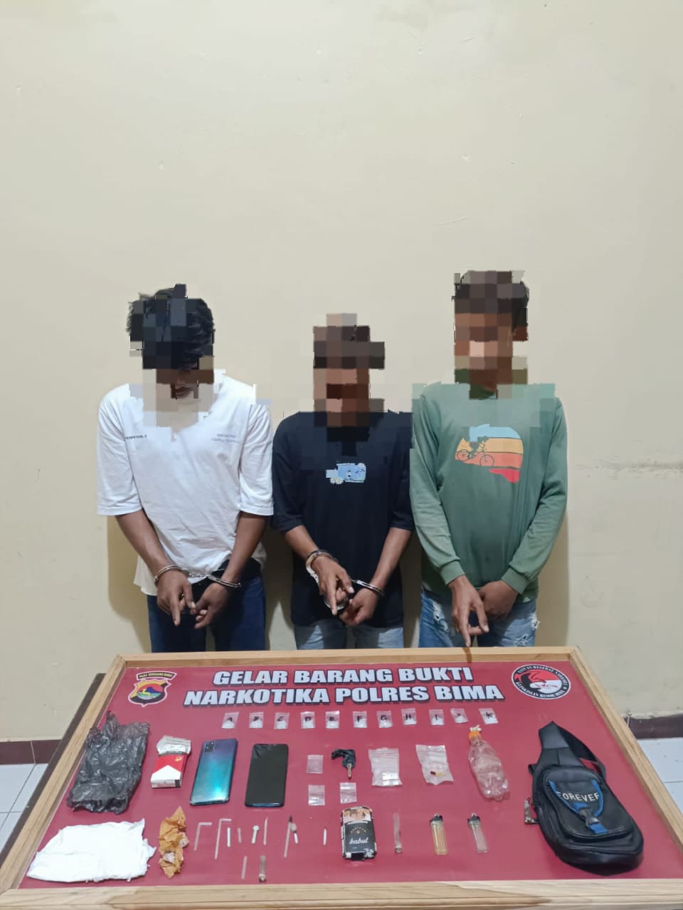 ‘’Kni ketiganya bersama sejumlah barang bukti sudah diamankan di Mapolres Bima dan diperiksa secara intensif oleh penyidik Satreskoba Polres Bima serta diproses hukum lebih lanjut,’’ pungkasnya.