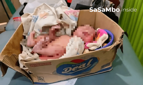 Bayi mungil yang masih hidup ini ditemukan terbungkus kain di dalam sebuah kardus.